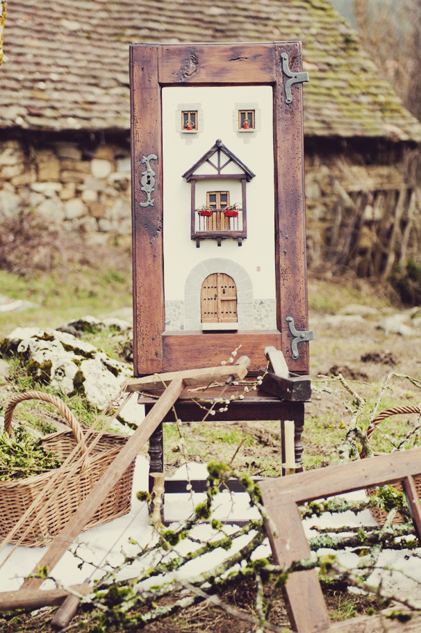 Avui us presento aquesta porta inspirada en una de les cases d’Ochagavia. En aquest cas una porta, que em feia molta il·lusió reproduir, amb un balcó amb taulada de doble vertent i una portalada d’arc rodó, molt típica de la zona. El marc és d’una antiga finestra de la casa de l’ermita del poble, Muskilda.